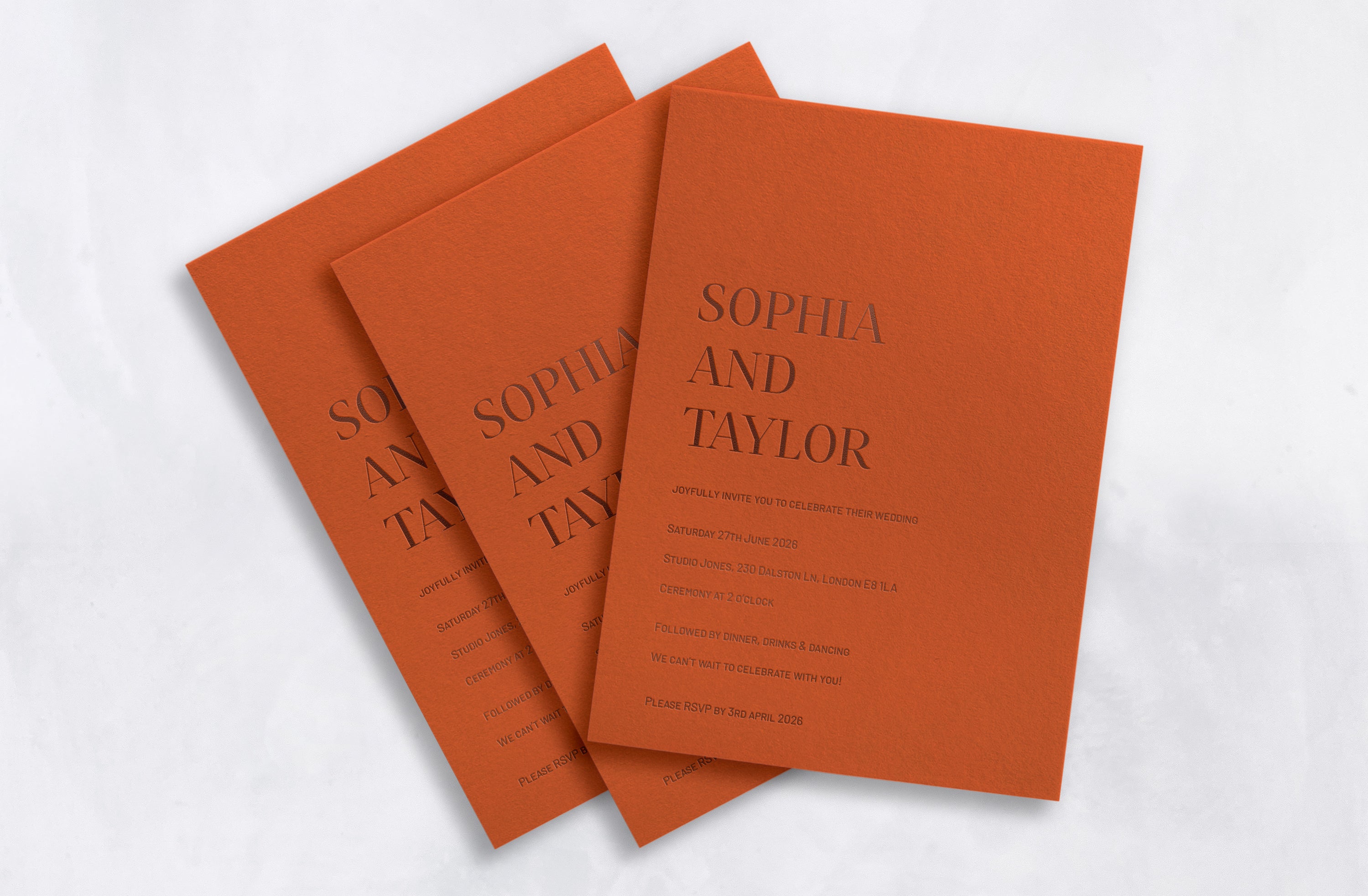 Shop collectionsModern, ready-to-order suites with customisable details and refined foil finishes. Designed in-house for contemporary weddings.