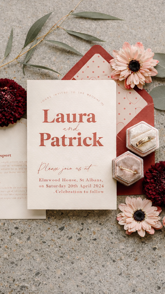 These elements are developed together to ensure consistency in proportion, spacing and tone across the entire celebration.