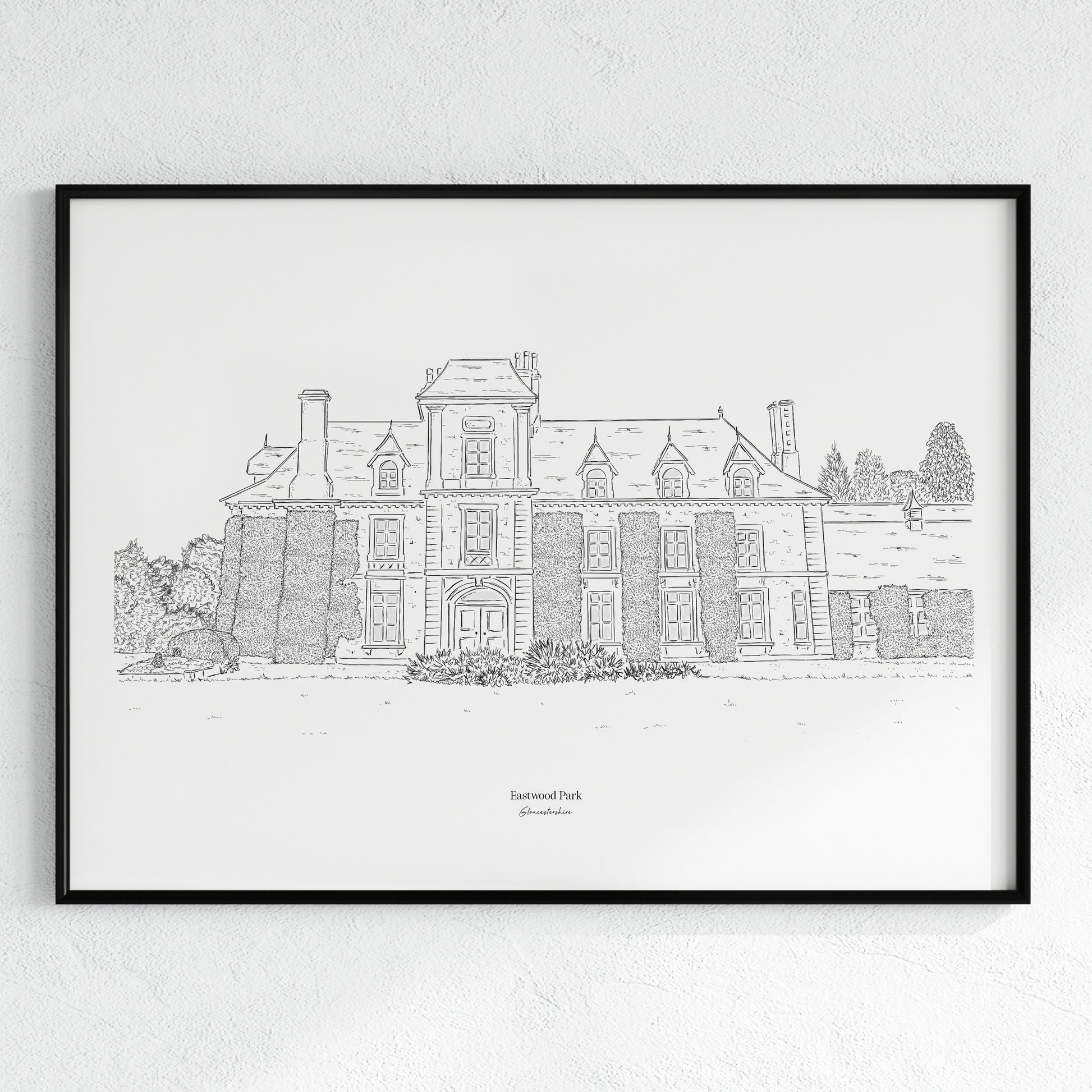 Eastwood Park is a delightful country house, captured in a stunning illustration.