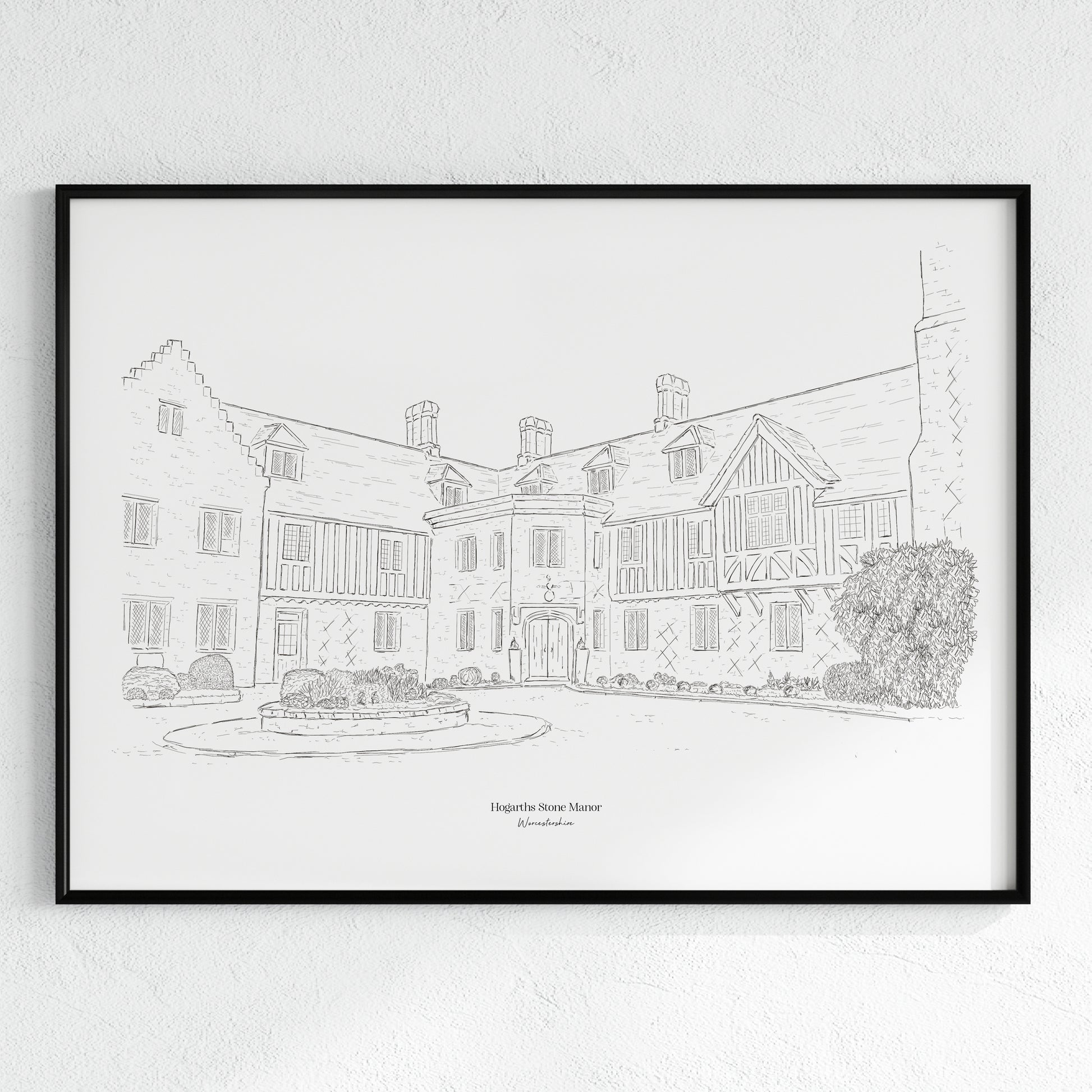 Hogarths Stone Manor, a beautiful Tudor Manor House, captured in a stunning illustration.