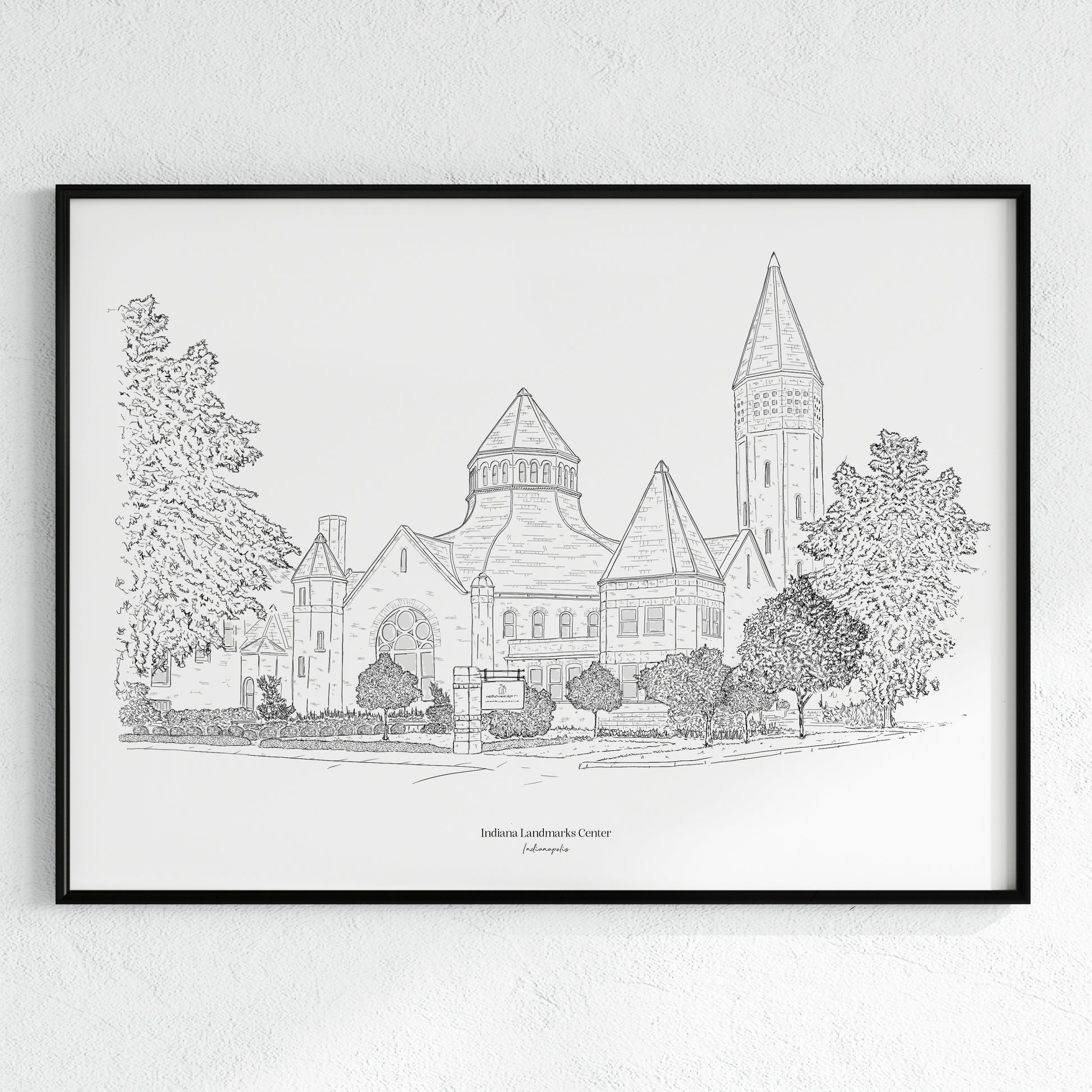 Indiana Landmarks Center, a stunningly adapted nineteenth-century church, captured in a stunning illustration.