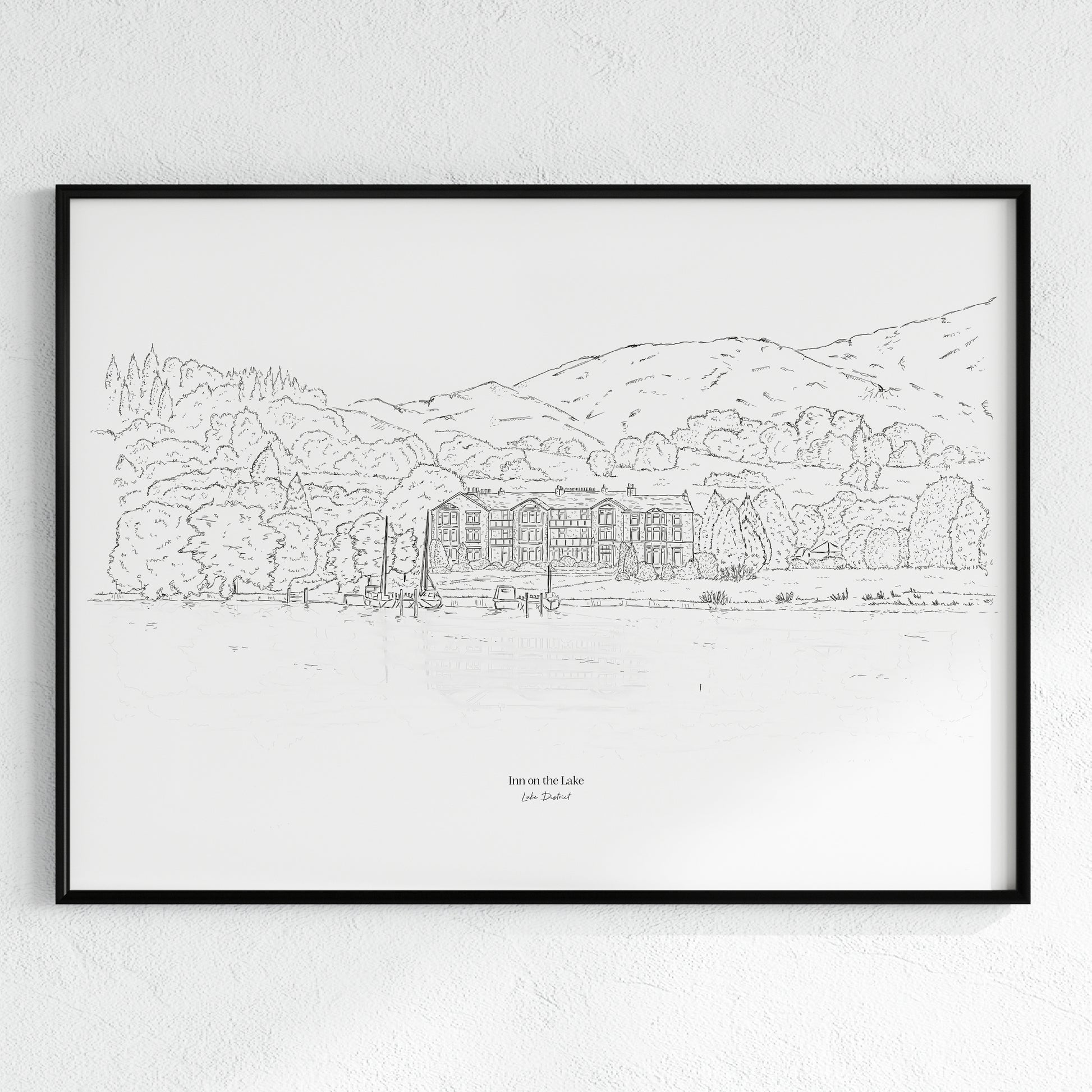 Inn on the Lake, this Victorian hotel has a peerless position on the shores of Ullswater, captured in a stunning illustration.