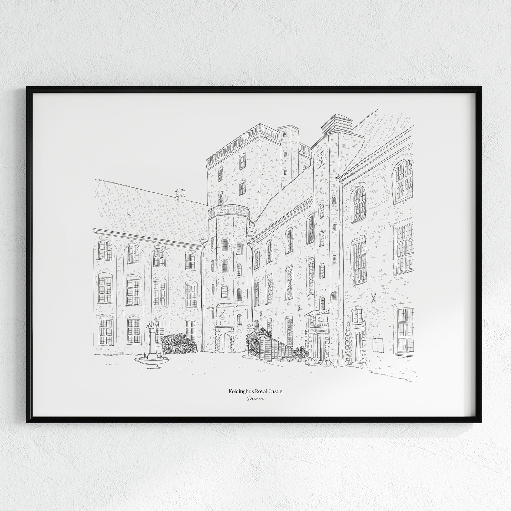 Koldinghus, built in the middle of the 13th century, it is one of Denmark's most important royal castles, captured in a stunning illustration.