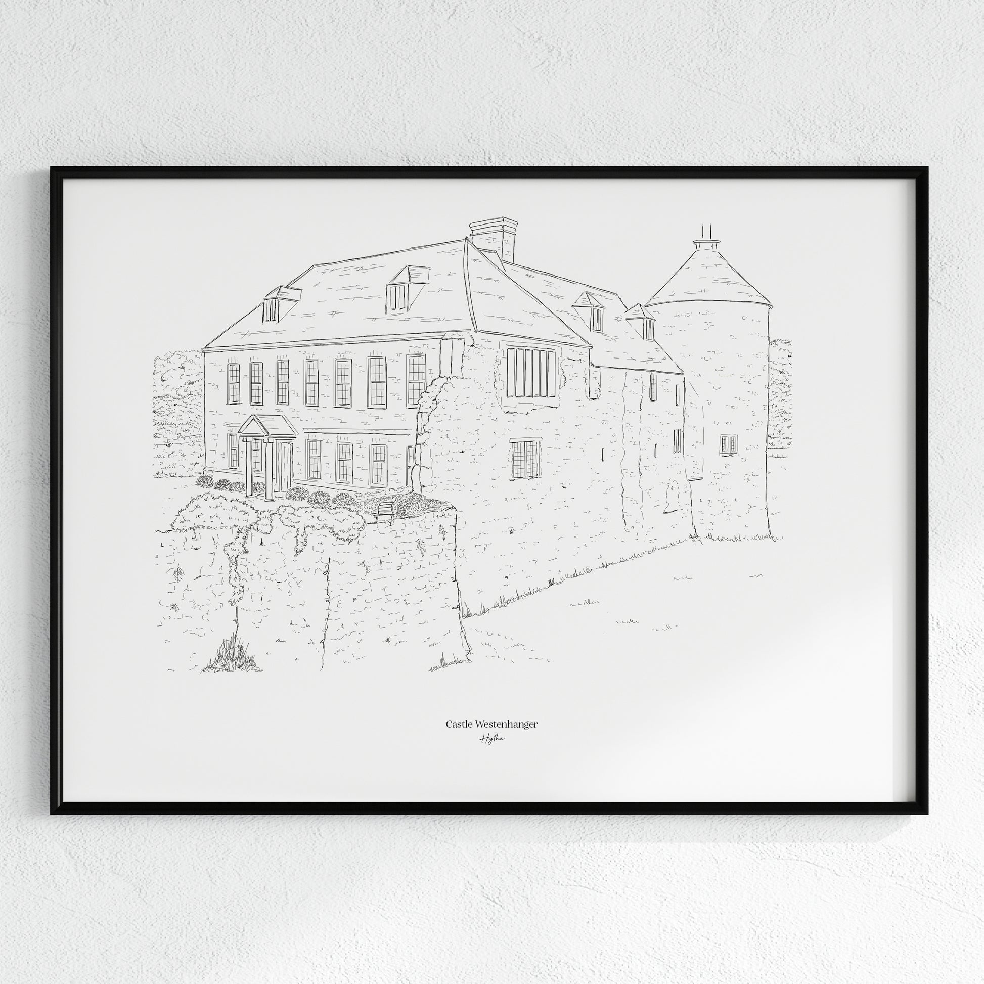 Westenhanger Castle, a fortified manor house once owned by royalty, captured in a stunning illustration.